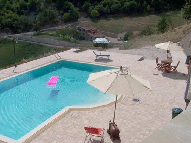 Dall'alto della piscina infatti si apre una visuale superba sulla valle tra verdi monti e ondulate colline! La sua posizione panoramica la rende particolarmente suggestiva e il suo utilizzo ancora più piacevole.